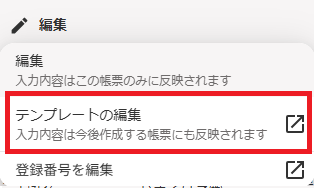 一回限りの情報なら「編集」をクリック、今後もずっと使用するなら「テンプレートの編集」を選びます。